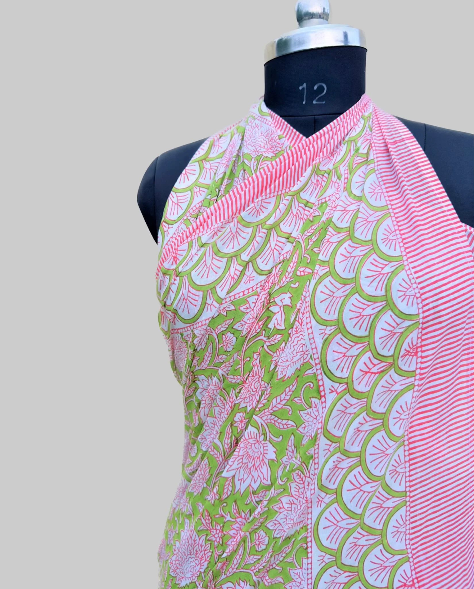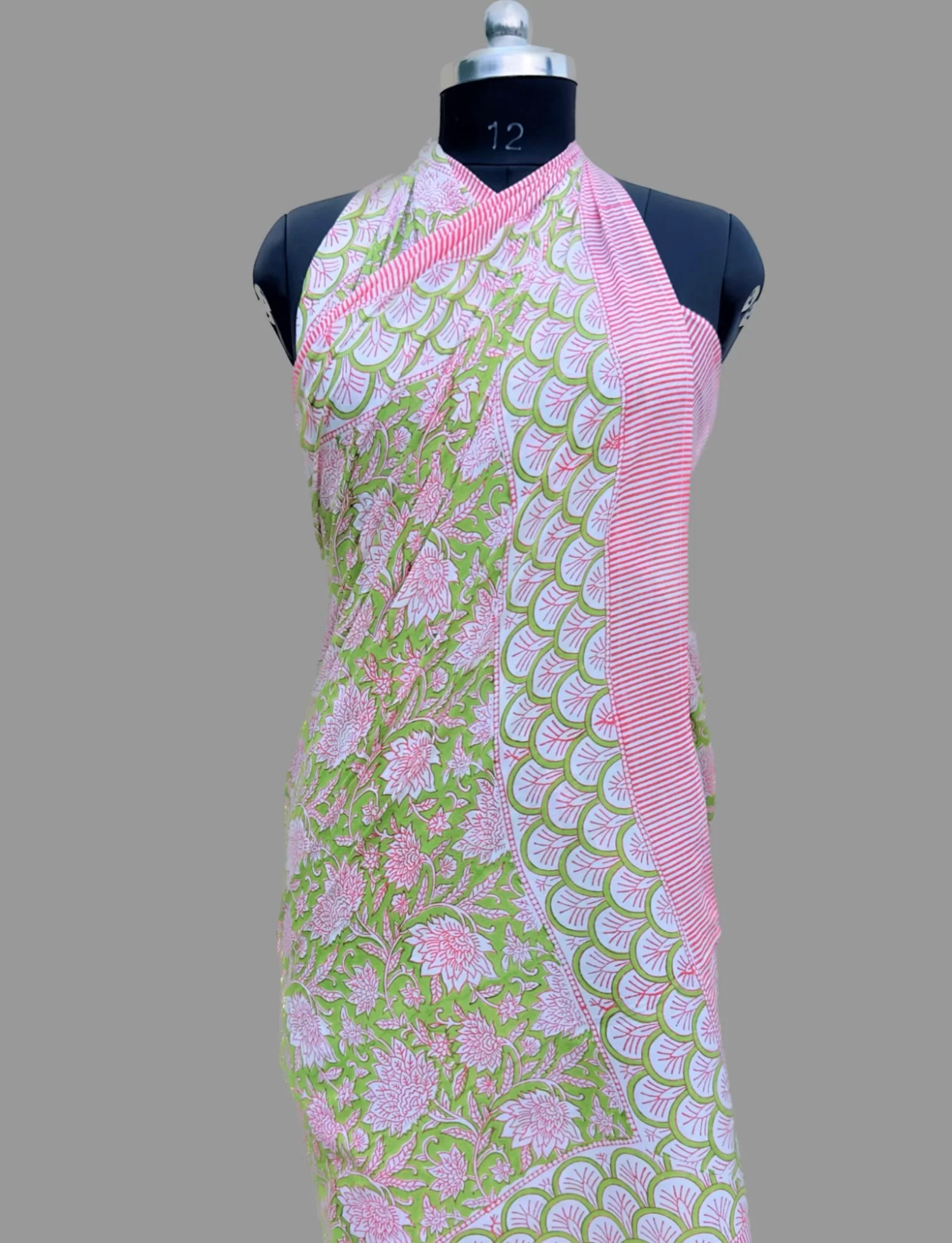 This is hand block print summer fashion cotton beach Scarf. This is made by light weight voil, skin friendly cotton. it is mostly preferred for summer as a cover-up for beach or pool parties.